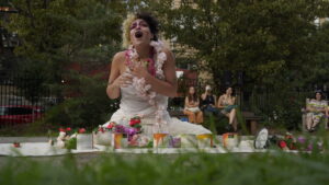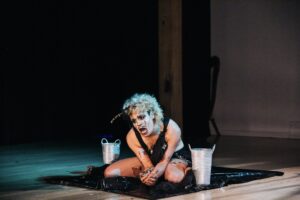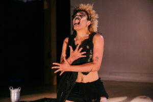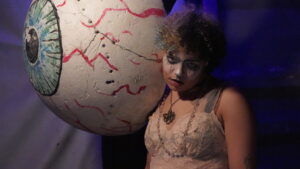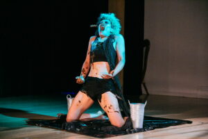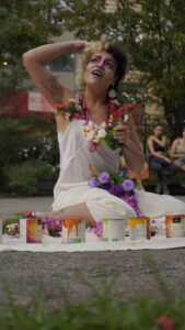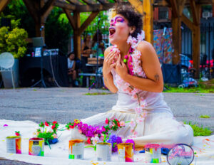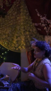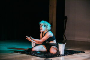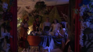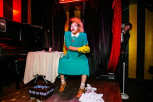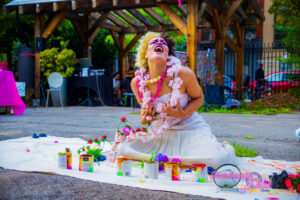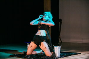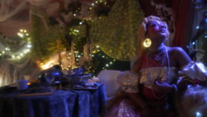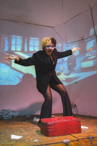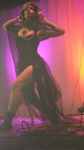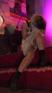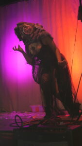 With a focus on storytelling, Vague Static aims to paint a picture. Through interactive audience participation and with the help of friends, this performance highlights the western-colonial pressure put on women and femme-presenting individuals to marry into an obsessive hetero-normative system. By performing an over the top portrayal of desire, to the point of a stereotypical display of madness, the act is structured around misogynistic audio clips of years past and brings into question wherein lies the cause and effect of certain actions.