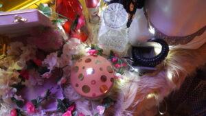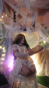 Self-expression is a powerful force, a vulnerability shared with the outside world. Each individual is an ever growing and changing manifestation, and that includes the exploration of gender. Especially as trans and non-binary individuals are increasingly attacked and used as a scapegoat, the self-reflective journey is similarly a radical one. In such it’s imperative to stand strong in one’s sense of self, particularly as it is a means to show those working through similar journeys that there is a beautiful light at the end of the hardships that come with such explorations. We are not alone, we’ve always existed, and we are allowed to explore, discover, and play. This piece brings in parts of myself from childhood, those parts worried about being seen as incomplete and scared of how I felt incapable of controlling how I was changing. Taking control of my own narrative and reconnecting with my inner sense of wonder has allowed me to reclaim my power and share with others to help do the same.